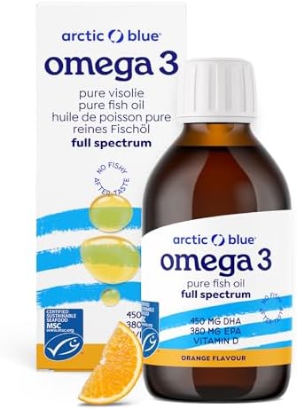 Arctic Blue Omega 3 Fischöl 150 ml – Hochdosiert mit DHA, EPA & Vitamin D – Kein Fischgeruch, MSC-Zertifiziert, Für gesuArctic Blue Omega 3 Fischöl 150 ml – Hochdosiert mit DHA, EPA & Vitamin D – Kein Fischgeruch, MSC-Zertifiziert, Für gesu