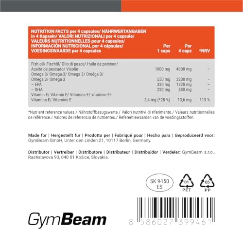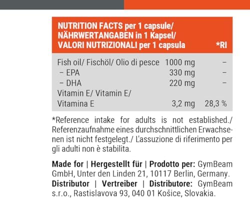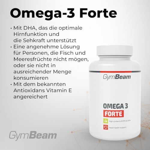 GymBeam Omega 3 Kapseln Forte – Hochdosiert mit 330mg EPA & 220mg DHA – Unterstützt Herz, Gehirn & Sehkraft – 90 KapselnGymBeam Omega 3 Kapseln Forte – Hochdosiert mit 330mg EPA & 220mg DHA – Unterstützt Herz, Gehirn & Sehkraft – 90 Kapseln