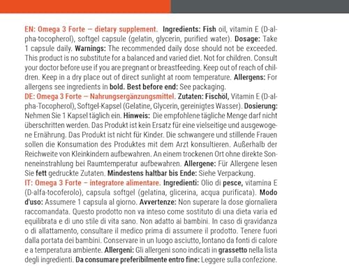 Investiere in deine Gesundheit mit Omega-3-Forte-Kapseln, die nicht nur reich an wichtigen Nährstoffen sind, sondern auch höchsten Qualitätsstandards entsprechen. Dein Körper wird es dir danken!