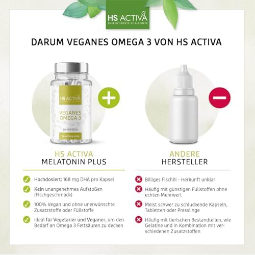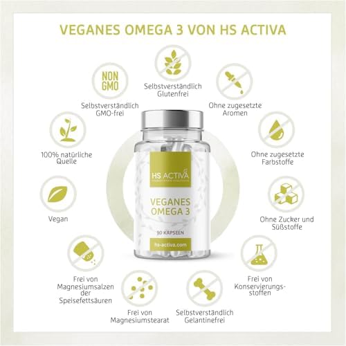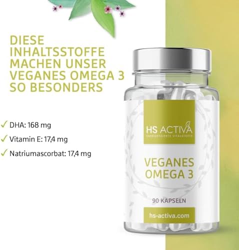HS Activa Omega 3 Kapseln vegan – Hochdosierte 90 Algenöl-Kapseln für gesunde Ernährung – Geschmacksneutral & ohne ZusätHS Activa Omega 3 Kapseln vegan – Hochdosierte 90 Algenöl-Kapseln für gesunde Ernährung – Geschmacksneutral & ohne Zusät