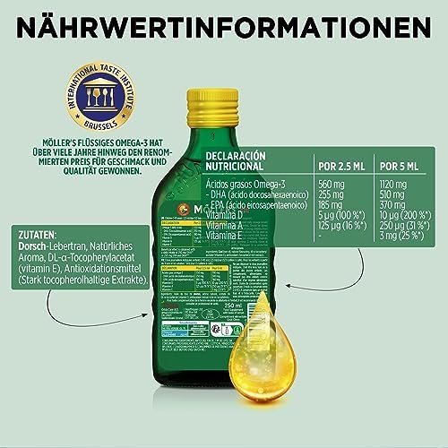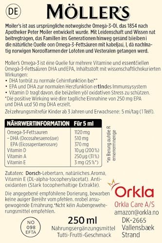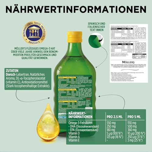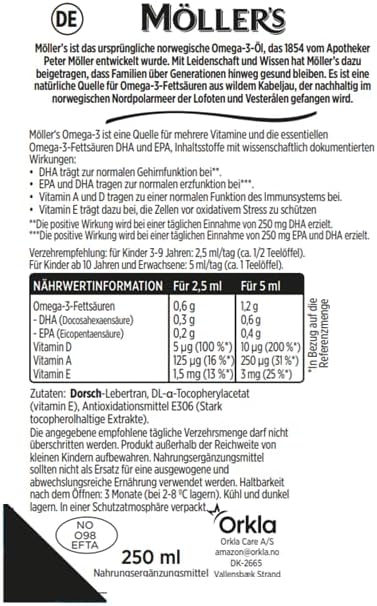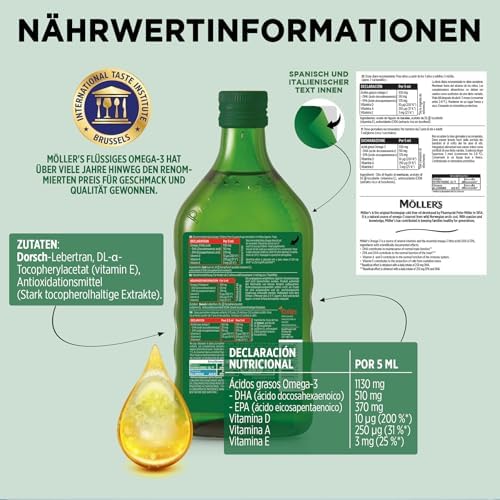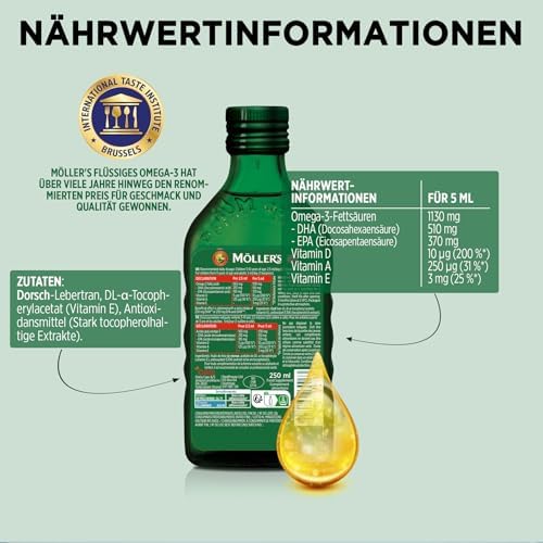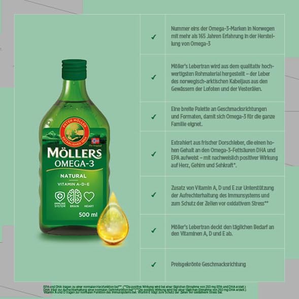 • Höchste Reinheit: Möller’s Lebertran bietet natürliche Reinheit und ist ideal für Schwangere und Kinder, die auf hochwertige Nahrungsergänzungsmittel angewiesen sind.