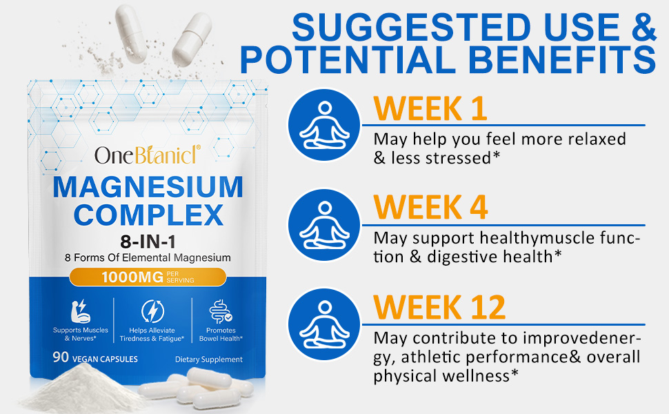 Unser Produkt vereint die Kraft von acht verschiedenen, hochbioverfügbaren Magnesiumformen, darunter Bisglycinat, Malat, Citrat und Orotat. Diese sorgfältig ausgewählten Komponenten sorgen für eine optimale Aufnahme im Körper, was zu einer effektiven Versorgung mit elementarem Magnesium von 1000mg pro Portion führt.