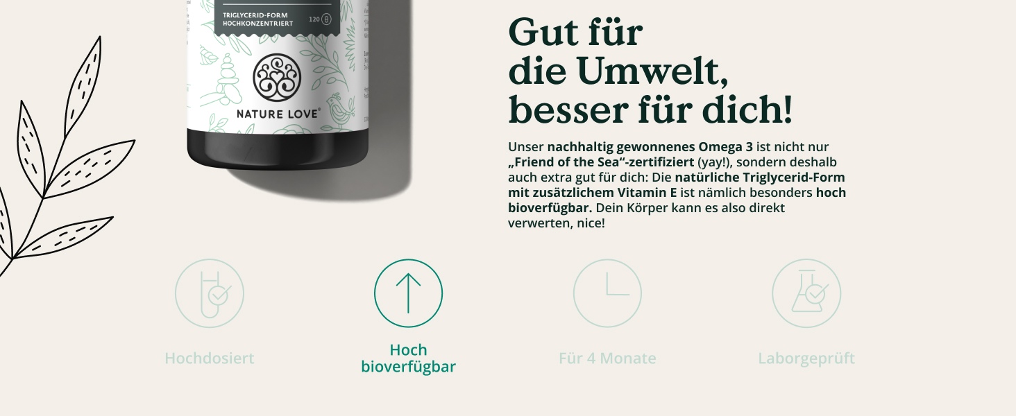• Triglycerid-Form für optimale Bioverfügbarkeit: Unsere Kapseln ermöglichen eine bessere Aufnahme der wertvollen Omega-3-Fettsäuren durch deinen Körper.