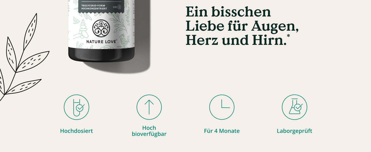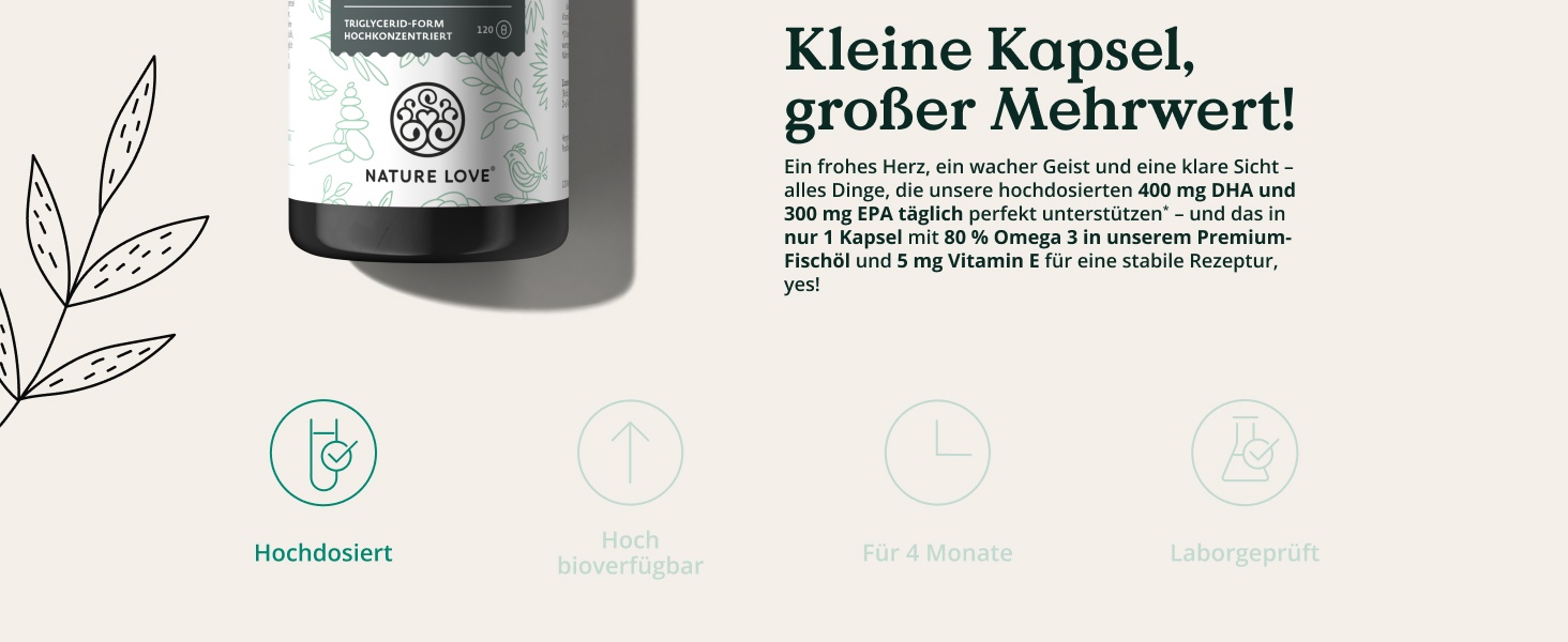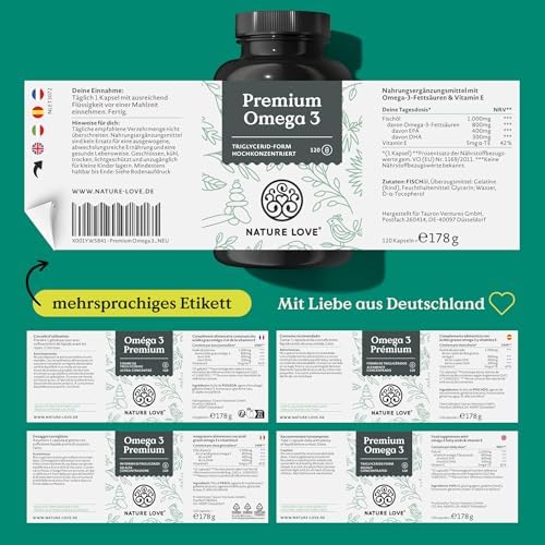 Nature Love Premium Omega 3 Kapseln 120 Stk. - 1000mg Fischöl, hochdosiert & nachhaltig, für optimale GesundheitNature Love Premium Omega 3 Kapseln 120 Stk. – 1000mg Fischöl, hochdosiert & nachhaltig, für optimale Gesundheit