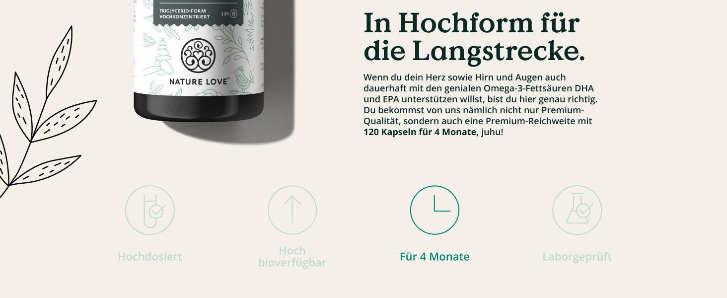 • 300 mg DHA pro Kapsel: Für eine verbesserte Sehkraft und Gehirnfunktion – beste Voraussetzungen für deine geistige Fitness.