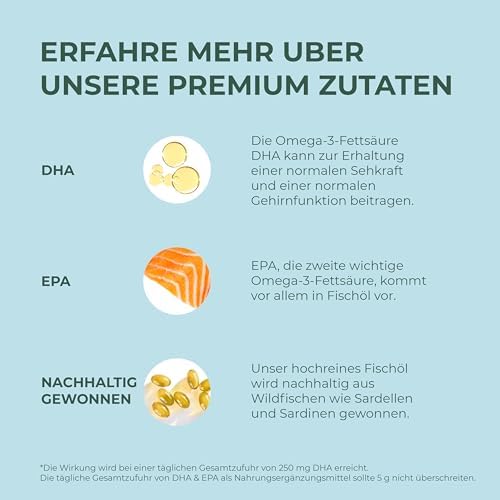 • Sehkraft Erhaltung: Enthält DHA, das nachweislich zur Aufrechterhaltung einer normalen Sehkraft beiträgt – perfekt für Bildschirmarbeiter.