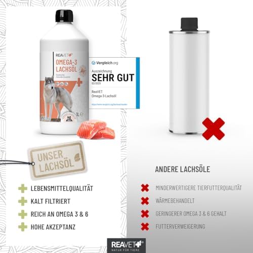 Mit ReaVET Lachsöl schenken Sie Ihrem Haustier die optimale Unterstützung für ein gesundes und glückliches Leben. Setzen Sie auf die Kraft der Natur und steigern Sie das Wohlbefinden Ihres geliebten Vierbeiners.
