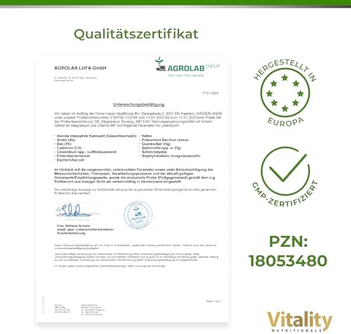 Unsere Magnesium-Kapseln kommen ohne unerwünschte Zusatzstoffe aus und garantieren somit eine reine und vertrauenswürdige Produktqualität. Regelmäßige Prüfungen durch externe Labore stellen sicher, dass jede Charge unseren hohen Qualitätsstandards entspricht.